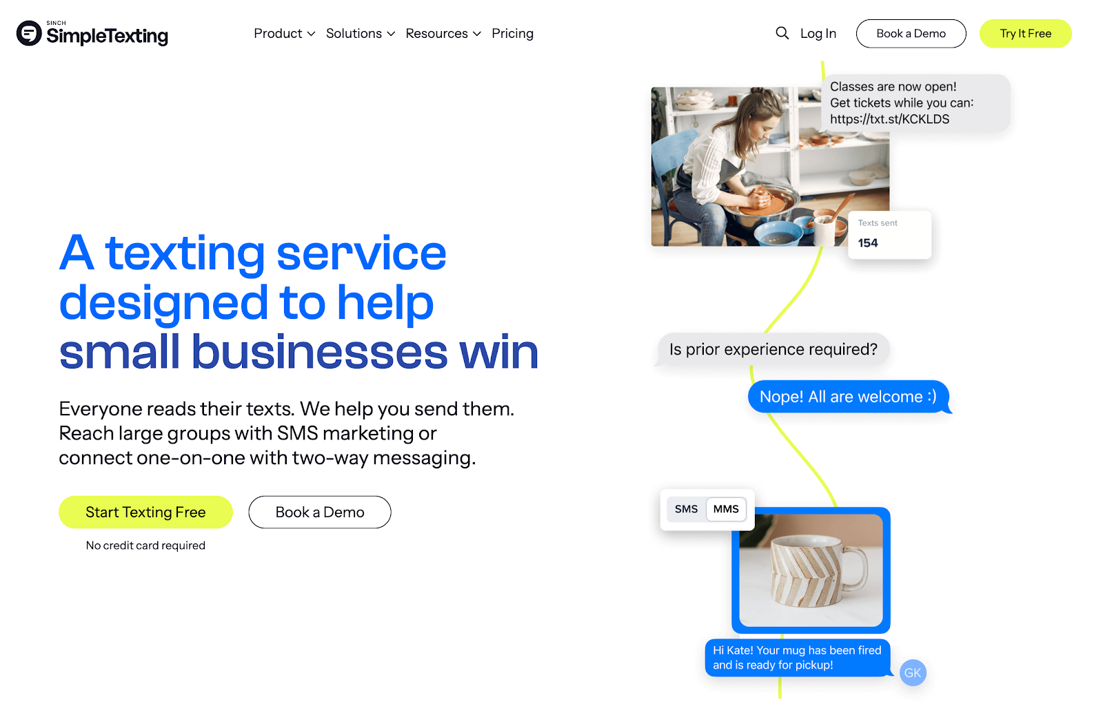There are no upfront fees or monthly minimums, and you just pay for the texts you send. |